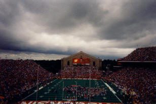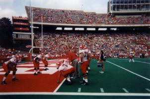 On an overcast Saturday, the Badgers looked to prove the crowd right by leading 20-10 at halftime. However, Fresno State’s clock was far from hitting midnight. Astonishment struck the faces of Badger fans when Fresno State kick returner, Bernard Berrian, took the opening kickoff of the second half and returned it 96 yards for a touchdown. The brazen Bulldogs opted to go for two after the score and succeeded, squeezing the Wisconsin lead to two. Concern swept the stadium as the Badgers needed to recapture momentum on the ensuing drive. However, Wisconsin quarterback Jim Sorgi threw an interception and four plays later, David Carr tossed the leading score into the endzone. Another two point conversion gave Fresno State a 26-20 advantage. The lead change only took a couple minutes off the second half clock and that short time was enough to wilt the enthusiasm of the Wisconsin crowd.
