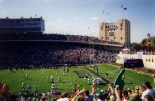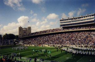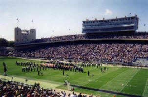 Out of respect for those who perished in the September 11th attacks and due to safety concerns, college football games were cancelled on the 15th of September. Some games resumed on the 22nd, but everything was back to full momentum on September 29. Entering the stadium, each fan received an embroidered stick-on flag to proudly wear. A lengthy moment of silence preceded the game and I knew that every stadium in the country was performing the same tribute.