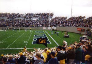 We located our seats and found ourselves swarmed by Cal fans and buttressed up against the Cal band. Wearing no affiliation on my chest, I felt comfortable resting in the visitor section and welcomed the opportunity to witness some Golden Bear spirit first hand. The result of the game would offer me more from Cal than I would have expected.