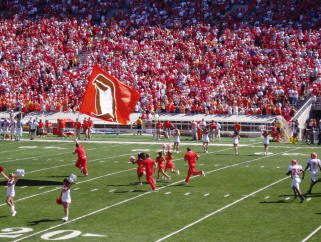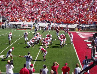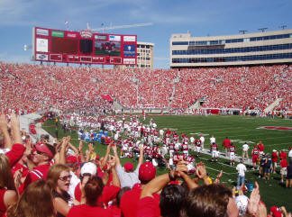 The situation looked bleak until Wisconsin tailback and Colorado transfer, Brian Calhoun, assumed a leadership role. The scoreboard became a pendulum as Calhoun and Jacobs continued to answer each other’s scoring feats. At the break, the new scoreboards around the stadium already looked worn as each team accumulated thirty five points to tie the situation.