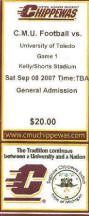 Having just arrived from Ypsilanti and the yawner that transpired there, Mount Pleasant was a pleasant surprise. The drive toward the stadium offered more excitement than the entire game played down at Eastern Michigan. Enthusiasm dripped from all corners of the campus with the epicenter of the action being the stadium parking lot. Nothing could have prepared me for the wild college party that blanketed the area around Kelly Shorts Stadium. Kids dancing on cars, wall to wall bodies, live bands and college spirit absolutely drenched the surroundings. Central Michigan easily could have been confused for a major college team. We couldn’t wait to punch our ticket and pass through the gates.