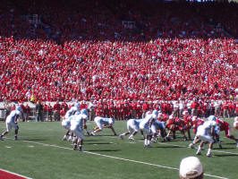 The baby blue Bulldogs hardly seemed daunted by the 80,000+ in Camp Randall Stadium. The naughty student section, the famous thirdquarter” jump” tradition, and the fast and slow motion wave turned heads and caused some gaping stares, but it didn’t affect their team’sperformance. We sat down near the Citadel cheerleaders, who cheered with a pronounced southern drawl. Even though their materialresembled that of a high school squad, they flung themselves into a spasm-like frenzy with every Bulldog score. They may not have been able to pull an Appalachian State this past weekend, but the Citadel furthered the respect for lower echelon squads and scared the pants off of any Division I-A team who has yet to play a Division I-AA squad on their schedule.