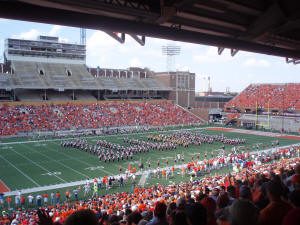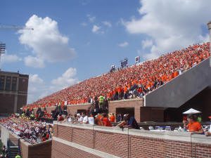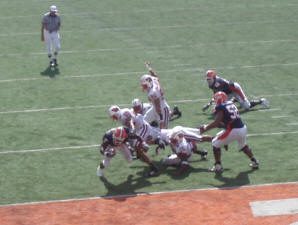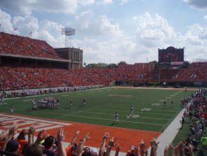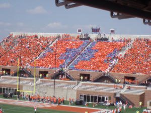Illinois slammed out to a 17-0 lead under the leadership of their versatile runningback, Mendenhall. Wisconsin closed the gap often during the game, but could not tip the scales. Illinois went for a gutsy fourth and one at the end of the game that required measurement for accuracy. A game of inches leaned toward Illinois’s favor and they ran out the clock winning 31-26. Illini players exploded onto the field and then, went up into the student section to celebrate with the rowdy crowd. Excitement like this has been rare at Memorial Stadium and this victory would last in memories of the Illinois faithful for years to come.