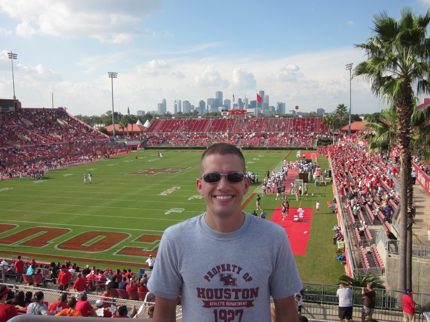 When a game is hot according to Houston standards, you know that no amount of sunscreen, ice down the back, or Robertson Stadium’s red “Cougar Brew” is going to bring enough relief. Being accustomed to a climate controlled dome for home games, Tulane cheerleaders and band members had to give that extra effort to muster some spirit. The palm trees that mark the vertices around the stadium barely swayed indicating a stifling environment. The press box side of the stadium offered some shade and fans began to shift over creating a visual imbalance. The Cougar band remained in the blazing sun intensified by their heavy uniforms. Yet, the effects of the heat slowly became an afterthought as the Cougars expanded their lead and sent home the fans happy. Upon leaving the stadium, a rain cloud offered a cool shower as a reward for those fans who stuck it out to the end. For the college football tour, it was off to the nightcap at Rice…