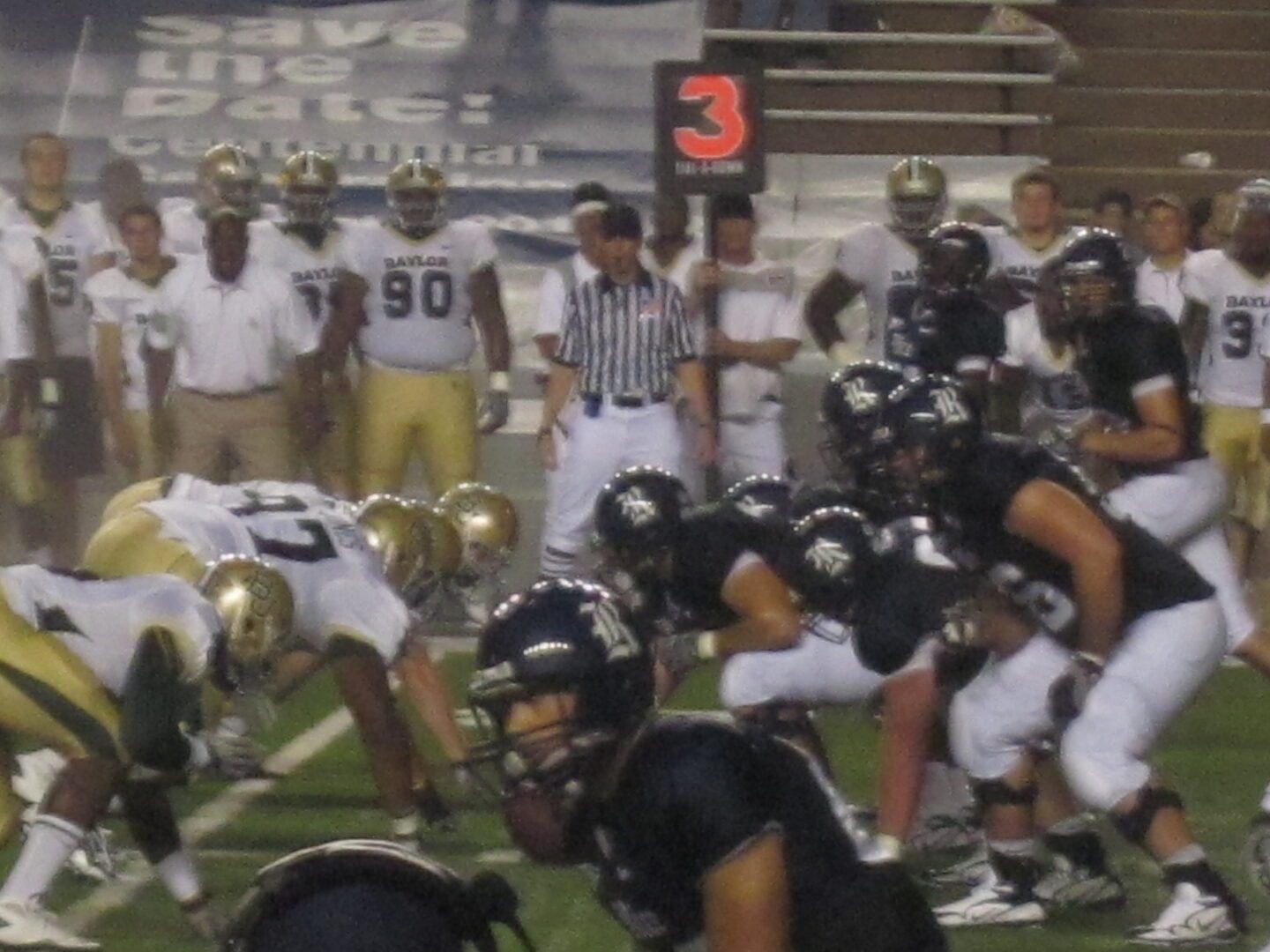 Rice is an outstanding academic institution that tends to seem out of focus when it comes to their football program. Despite some recent bowl success, the Owls appeared doomed to roost among the average in Conference USA. Further evidence of this came on this night when Baylor came to town. Of the mere 23,000 fans that showed up, around half displayed green and yellow in support of their Bears. Rice fans were not very vocal. However, their team did not provide them with much to exercise their vocal cords. In fact, the only thing that appeared to stop the Baylor offense was a lightning delay early in the second quarter.