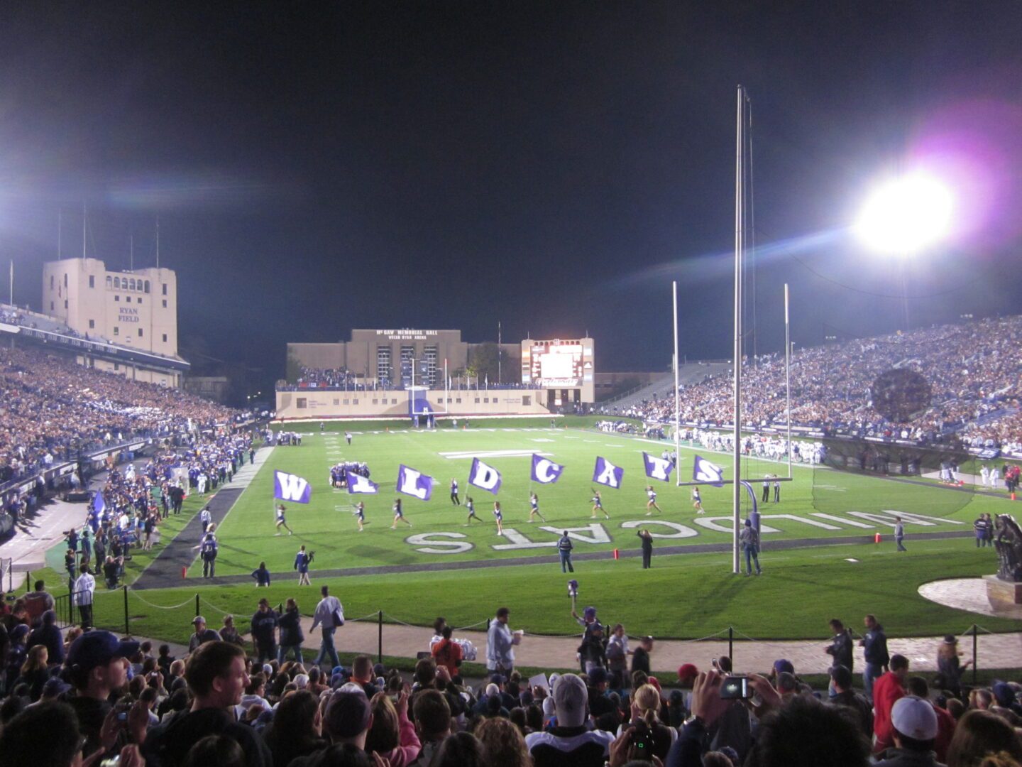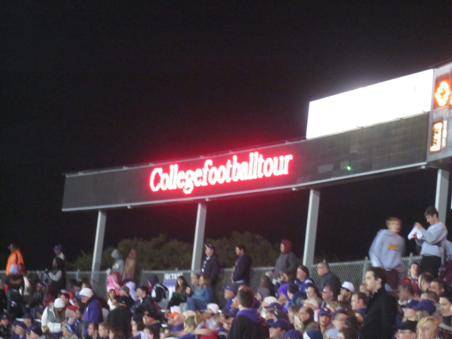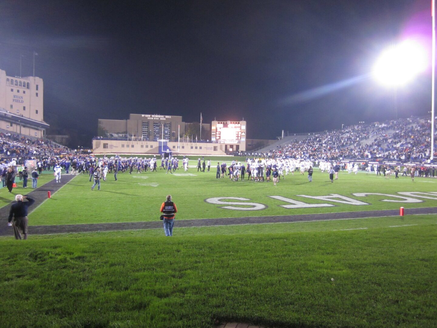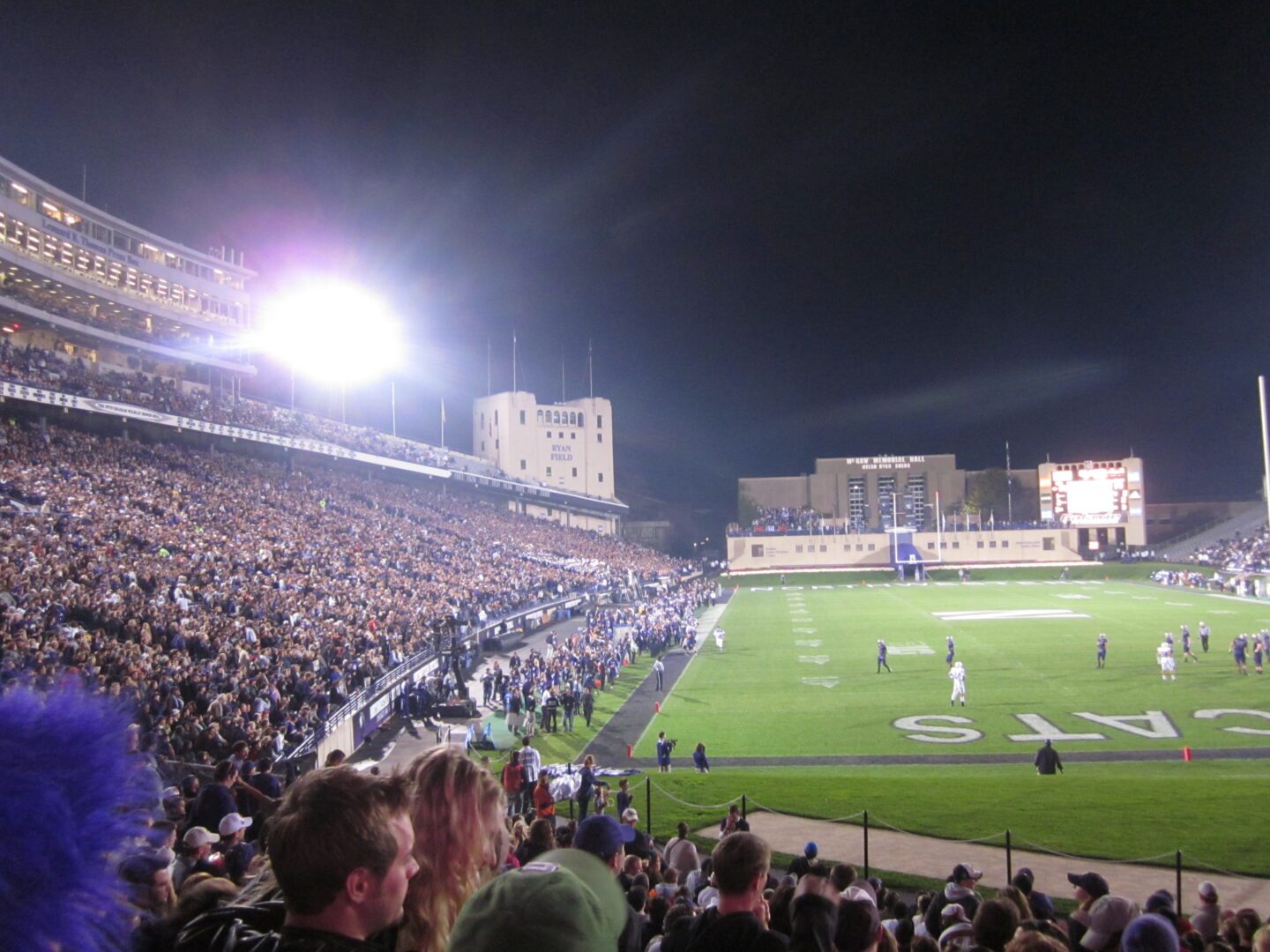 Our inaugural College Football Tour Northwestern tailgate took place with Joe Paterno’s Nittany Lions charging into Evanston. A variety of Big Ten fans were represented as we set up a few blocks from Ryan Field to experience a perfect autumn afternoon tailgate. After a few footballs and bean bags were tossed, dusk began to take effect and the temperature took a dip. We walked over to an brightly illuminated Ryan Field ready for this Big Ten clash.
