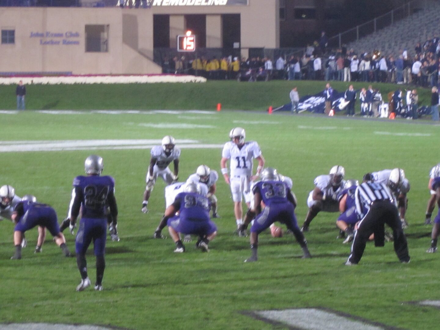 Joe Pa coached from the press box due to an ailing hip, but those classic white uniforms made his presence felt on the field. Northwestern unveiled shiny new uniforms for this game under the lights, and as the stadium began to fill, anticipation rose. A win for Penn State would tie Joe Paterno with Grambling’s Eddie Robinson for most all time Division 1 victories. The Wildcats have been on the receiving end of two other recent Paterno milestones: win #400 last season and win #323 which tied Bear Bryant. The scoreboard operator would earn his keep in the first half as the two teams traded punches for a 27-24 halftime lead for the Lions. But Penn State’s defense would bring this game to a screeching halt in the second half keeping the ‘Cats out of the endzone and giving JoePa his landmark victory. Starting this battle in such an exciting fashion made the second half seem like a snooze cruise. It sucked all the energy out of Ryan Field, much to the delight of PSU fans. This win keeps them on pace for a shot at the Big Ten title. The ‘Cats, on the other hand, are running out of lives and chances to impress bowl representatives.
