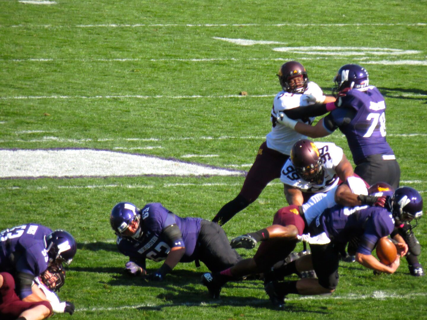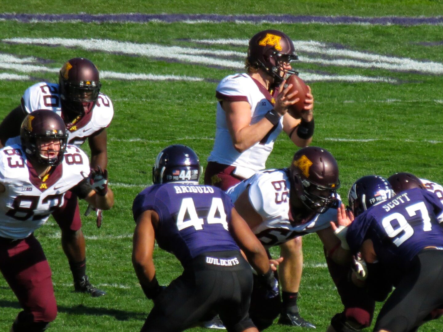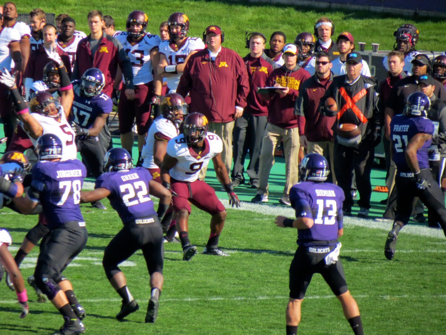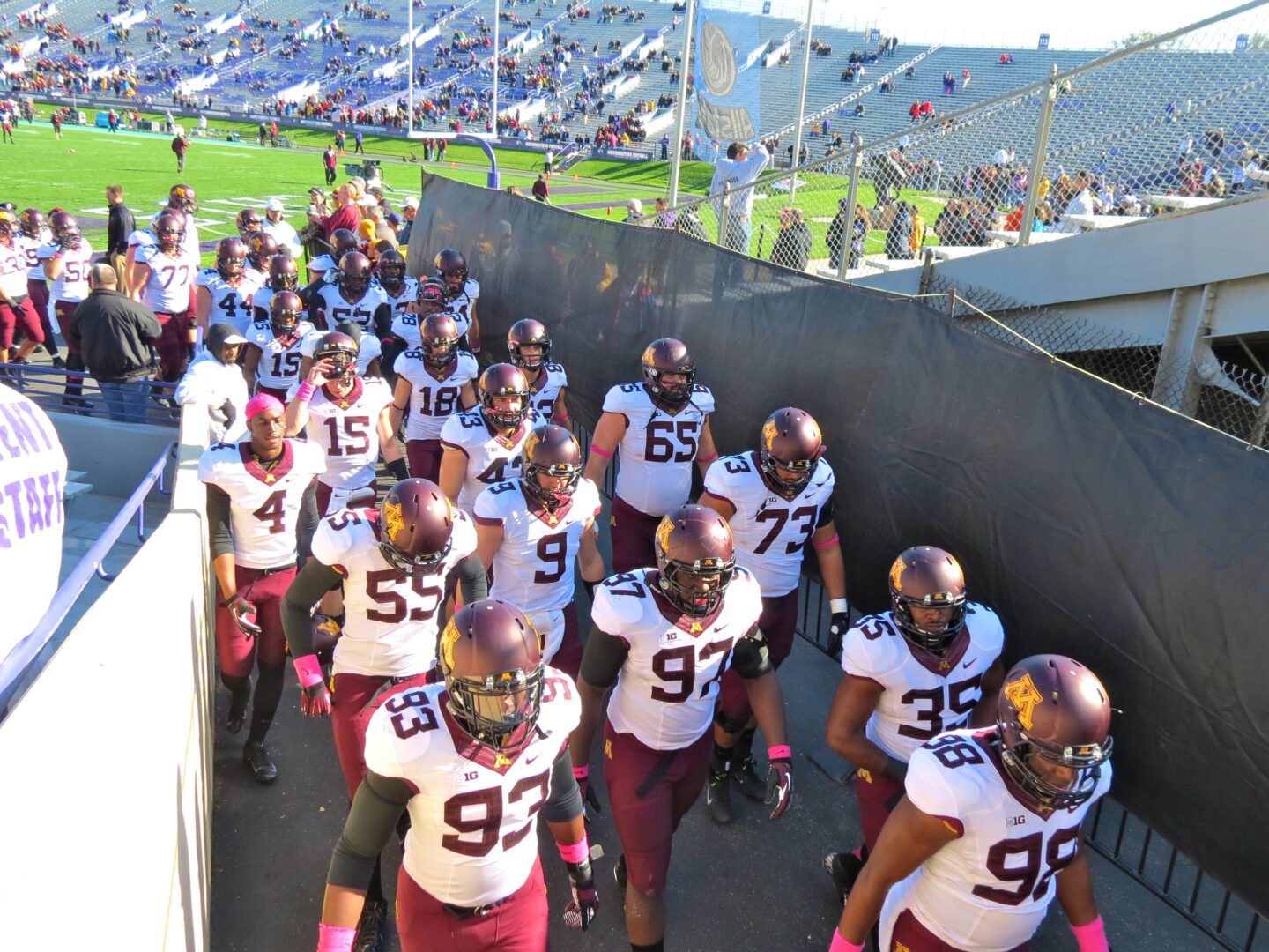 A great start to the morning would hopefully continue for the Wildcats in the afternoon as they look to bounce back from two tough losses to Ohio State and Wisconsin. The Golden Gophers of Minnesota would be the opponent for the day and they too were looking to halt a losing streak. The Gophers have been without their head man, Jerry Kill, due to the need for treatment for his chronic epileptic seizures. Little did anyone know that Coach Kill snuck down from Minneapolis to watch his team play from the press box. I learned this information after the game along with the fact that he gave his team a pep talk at halftime. Perhaps that is what motivated the Gophers to find their defensive prowess and shut down the Wildcat offense handing the ‘Cats their third straight defeat.