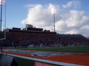 Doyt L. Perry Stadium, fondly named “The Doyt,” is the home of Bowling Green football. The construction is rather typical for a Middle American Conference arena. It’s small, yet cozy and certainly comes with devoted fans, making this place uninviting for visitors. In 2007, they tore out the north grandstand and made room for the modern and impressive Sebo Athletic Center, which houses offices, locker rooms, band seating and luxury suites. This newer addition clashes somewhat with the original structure that completes the rest of the stadium. But, the charm of “The Doyt” still remains.