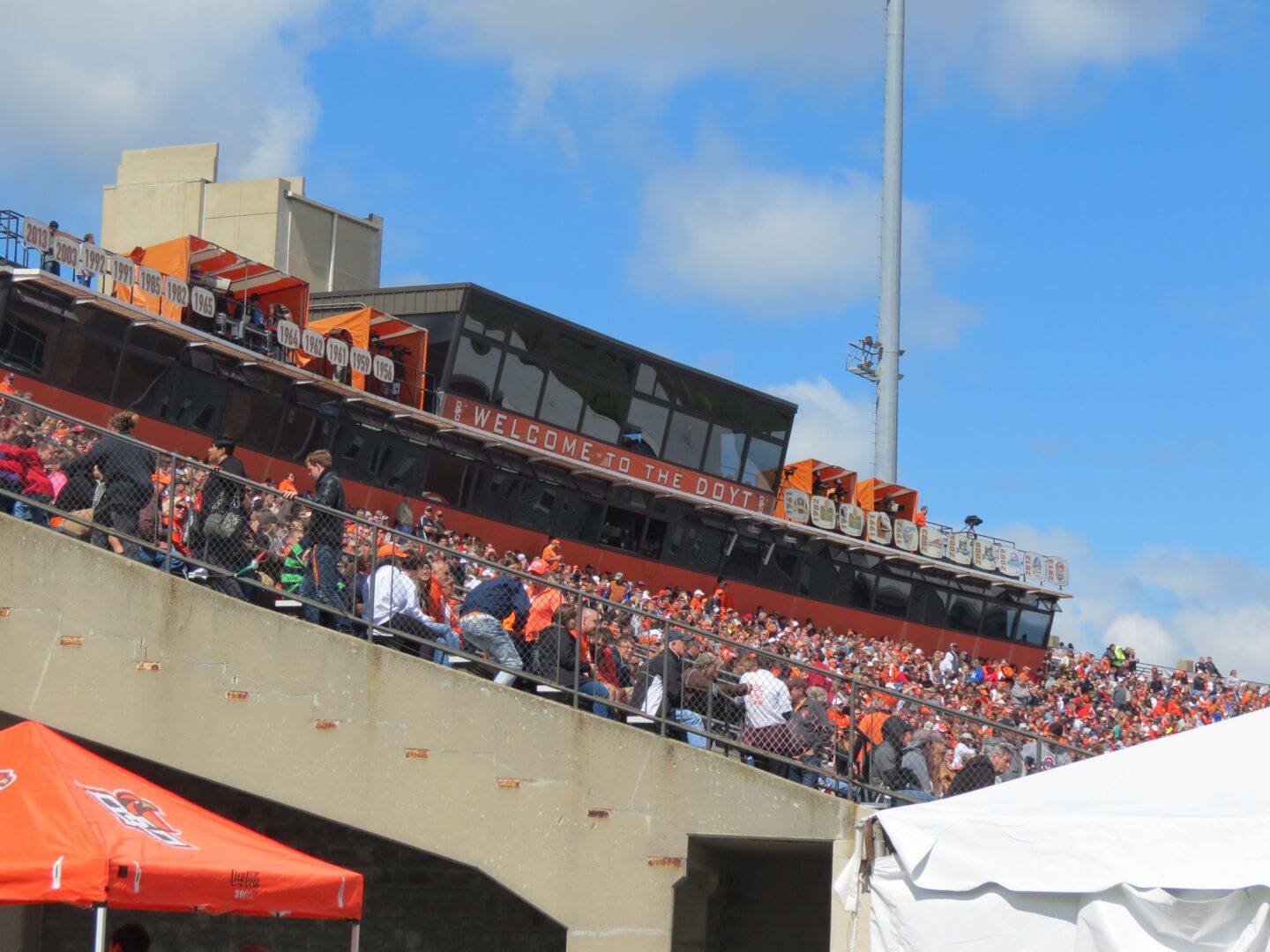 A more intimate experience with the game is part of what makes Bowling Green such a special place, and it is all done without diminishing the excitement level. When ESPN’s premier pregame show, College Gameday, arrived in Bowling Green, Ohio in 2003, the enthusiasm from the fans certainly was comparable to that of other frequently visited locations. That type of heightened excitement may not be on display for every visit to “The Doyt,” but when the team gathers around the band at the end of the game and sings the alma mater together with fans and friends, it becomes clear that a focus on college football’s roots is part of what makes this sport so special.