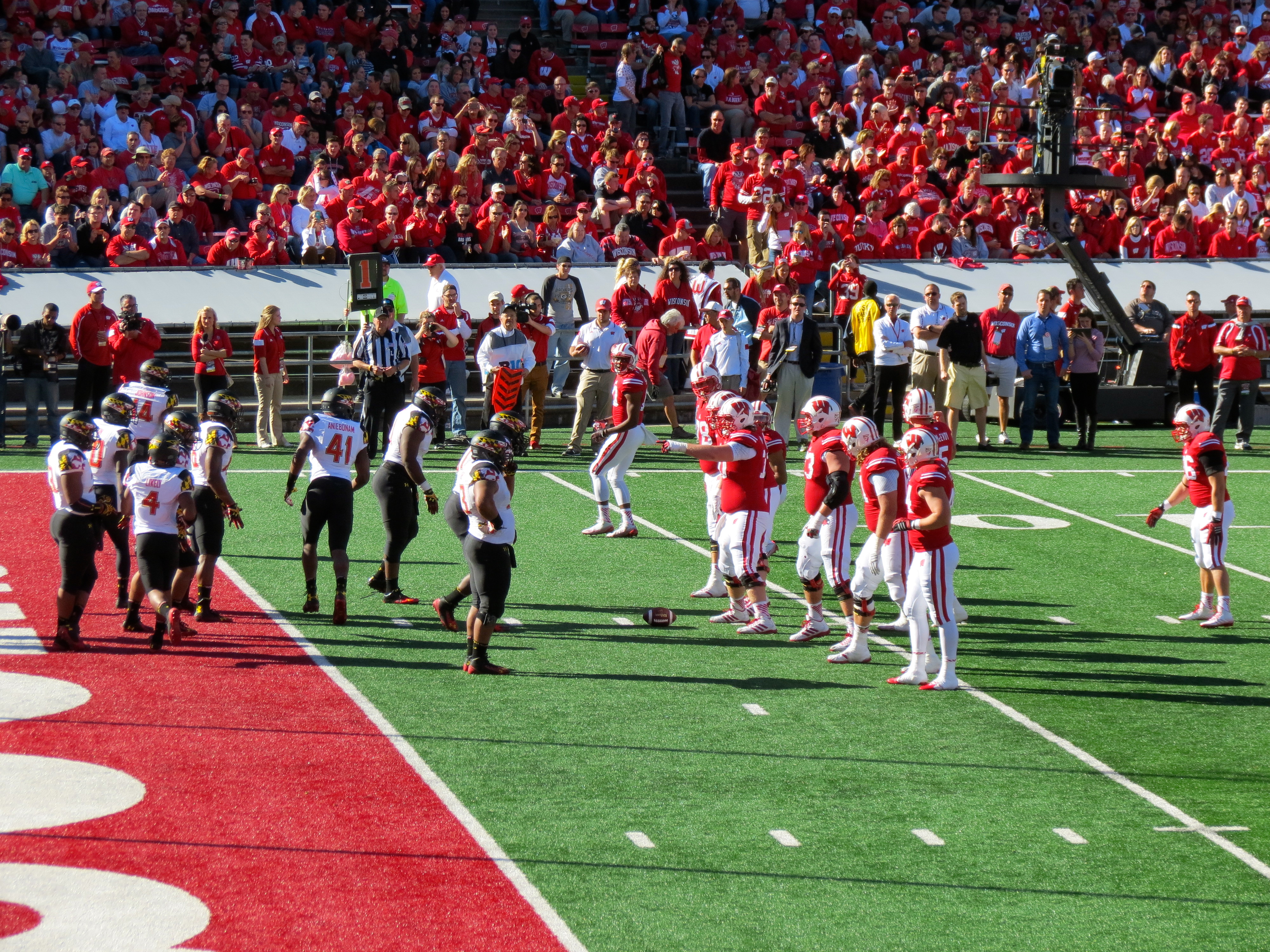 The weather couldn’t have been more agreeable. Fans fantasize about perfect football days like this – the cloudless ones that provide the sunshine and warmth to reflect every autumn color in October’s grand finale. Football was ready to take center stage in Madison. The Terrapins have never played in Camp Randall Stadium, which serves as one of the rites-of-passage venues for newbies to the Big Ten.  The novelty of the moment certainly wasn’t lost on Badger fans.  This is a new Big Ten team – a bit geographically displaced perhaps, but brand new nonetheless.  Maryland came in with their swag.  Slick UnderArmour uniforms, the state flag stamping every logo and tshirt – a giant turtle.  Wisconsin fans were brimming with a mixed feeling:  “Welcome to the Big Ten!” and “Good luck – you’re going to need it.”