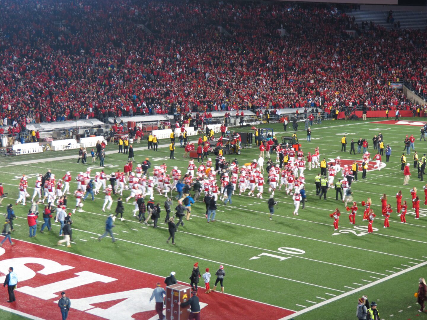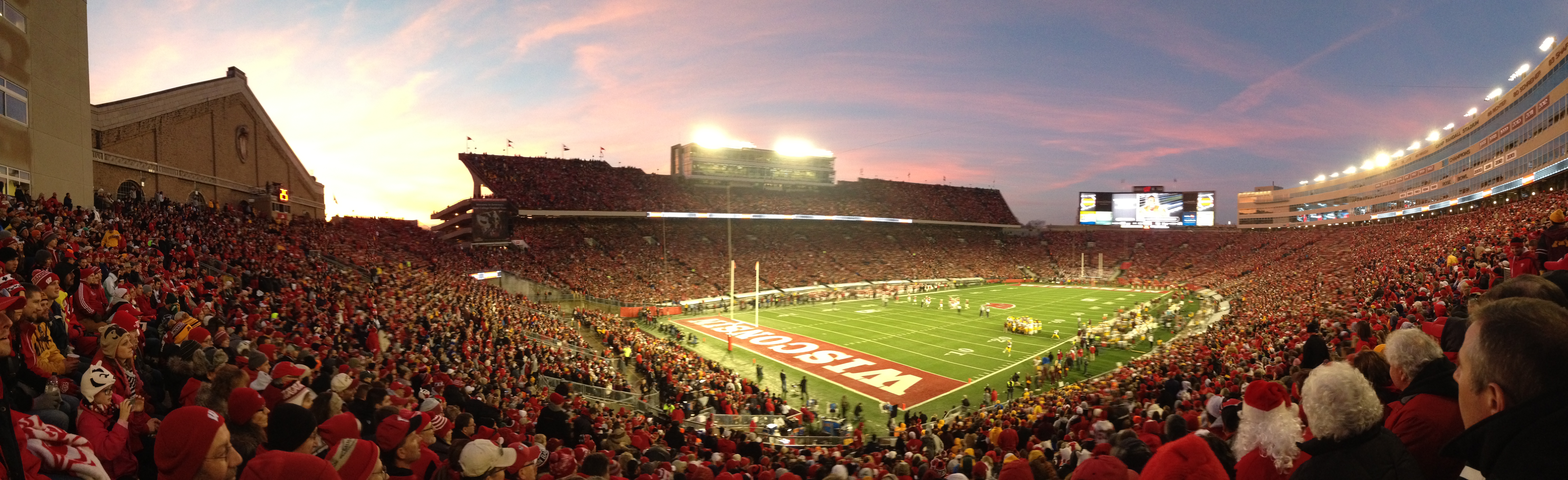 All the pregame distractions helped calm the anxieties swirling in the championship-flavored air. Minnesota appeared far from flustered as they came out flexing their rodent muscles and scoring rapidly – a few blinks and Wisconsin fans were looking up at a 17-3 deficit. The contingent that traveled along I-94 east roared with excitement as their chance for a title grew tangible. That roar was not well received by the packed throng of Axe grabby Badger backers. The team must have sensed the crowd’s dismay. Heisman candidate Melvin Gordon took charge in what most likely had been his last game in Camp Randall. QB Joel Stave chipped away through the air while Gordon took to the ground, and Wisconsin held off a pesky Gopher gang with a 34-24 finish.