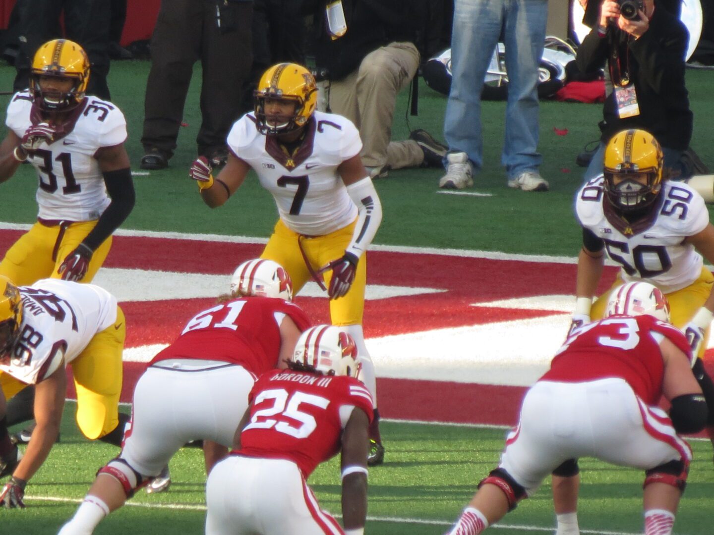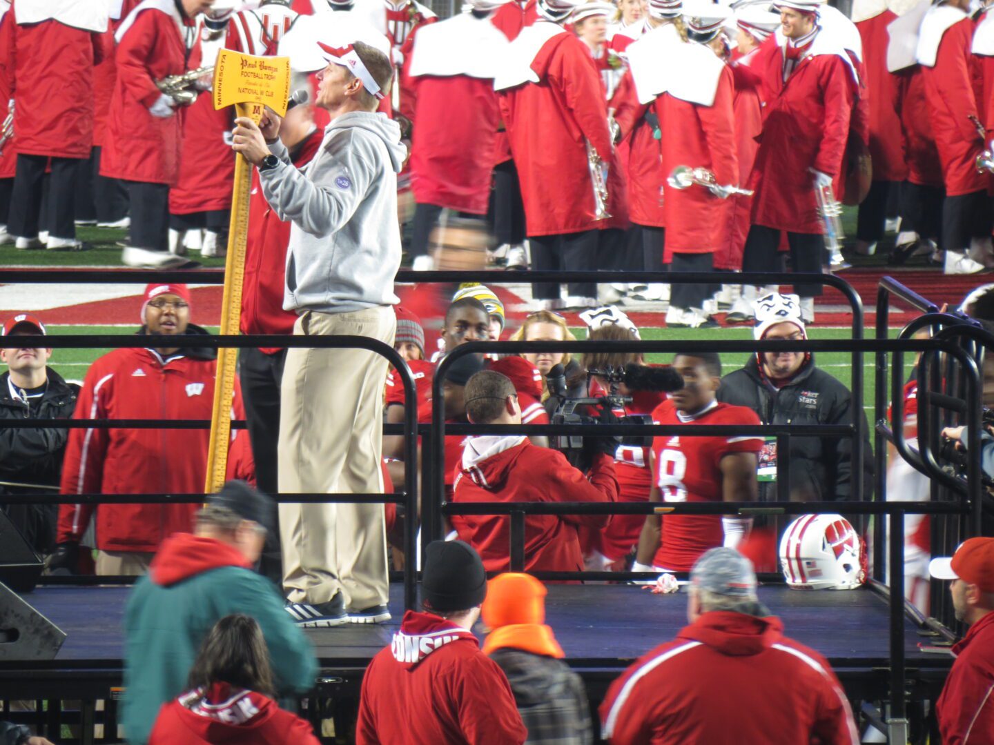The Gophers had a shot at something they haven’t achieved since 1967 – a Big Ten title. Of course, that would mean defeating Wisconsin in Camp Randall Stadium, a feat undone since 1994. It would also include beating Ohio State the following week, an accomplishment only realized twice since that magical 1967 season. Minnesota’s 2014 edition, however, could put a challenge into both the Badgers and Buckeyes. Today would be for the Big Ten West Division title. Paul Bunyan’s Axe was also at stake. This highly coveted trophy awarded to the winner of this border battle has been in Wisconsin’s trophy case for ten straight years -more incentive for Minnesota.