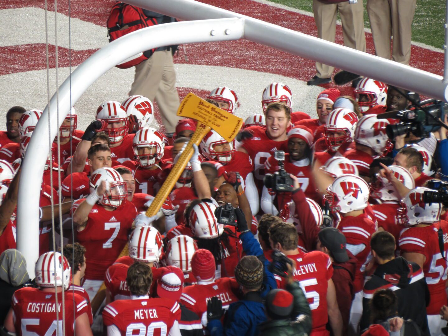 Casual observers may not feel as though the Big Ten West Title was the grand prize, as Bucky Badger emerged from the tunnel hoisting Paul Bunyan’s Axe to be awarded to Madison’s team for the 11th straight year. This broke some tradition as the Axe is typically kept on the sidelines. But, last year’s on-field scuffle prompted the Axe to be removed from the field until the losing team had exited. Badger players “chopped down” the goal posts and celebrated a division title in one swing. Wisconsin now would have to sharpen every tool they have to chop down the Buckeyes for the Big Ten title in Indy.