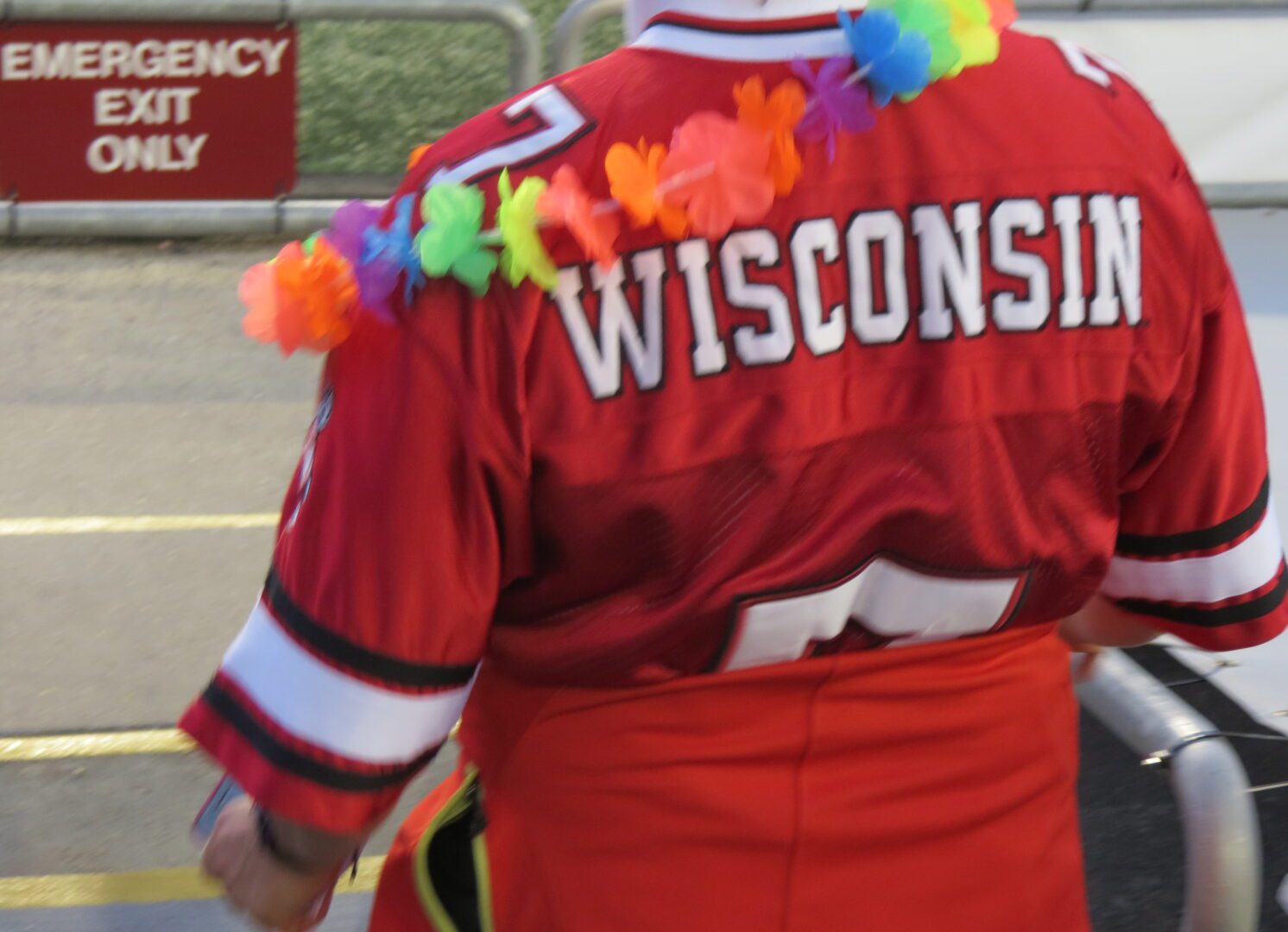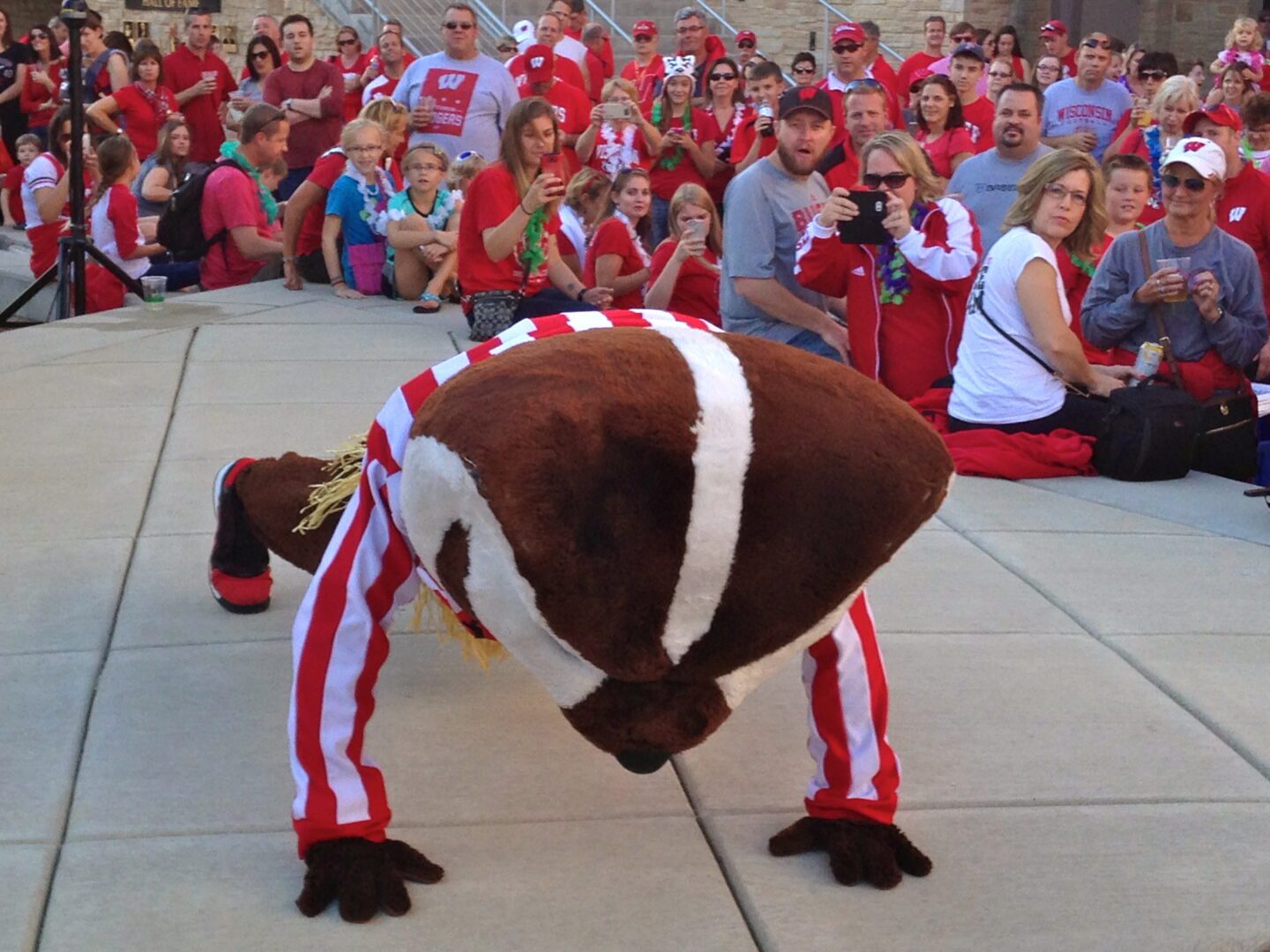 Hawaii’s visit to Madison inspired plastic luau-themed paraphernalia all over campus – palm trees, flowery leis, grass skirts – it’s as close as Wisconsin gets to that level of paradise. During the pregame band festivities, even legendary Badger band leader, Mike Leckrone got into the spirit by making his signature entrance on a surf board.