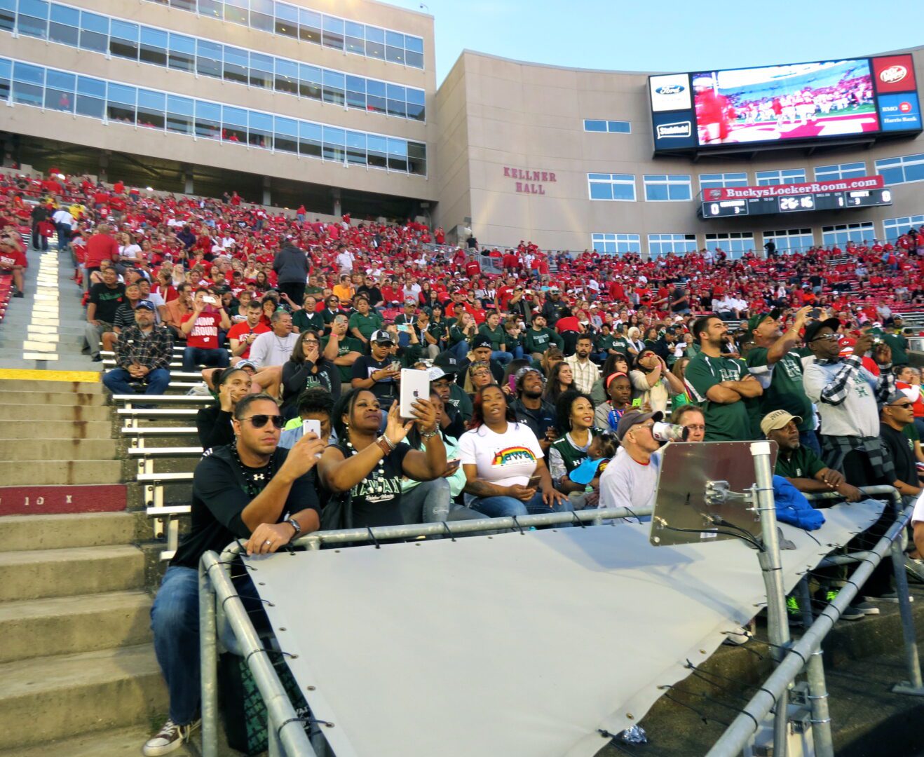 Many Hawaii fans made the trip from the islands to the Midwest for this interconference clash. The islanders that I spoke with were impressed with Madison and thrilled to be part of this classic Big Ten atmosphere. In return, Hawaii fans expressed pride in pointing out their team’s pregame Haka, a traditional war dance that connects to many of these players’ Polynesian roots (this is a must-see tradition in college sports).