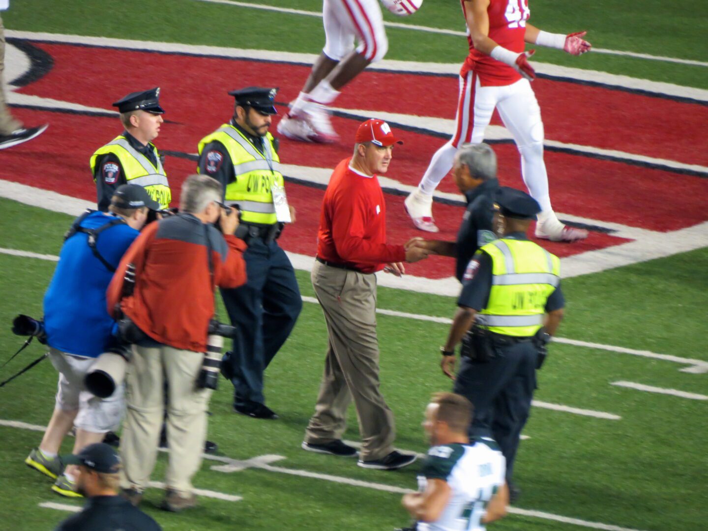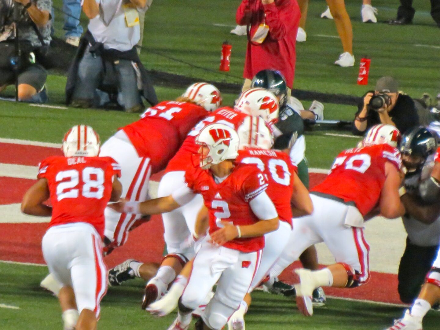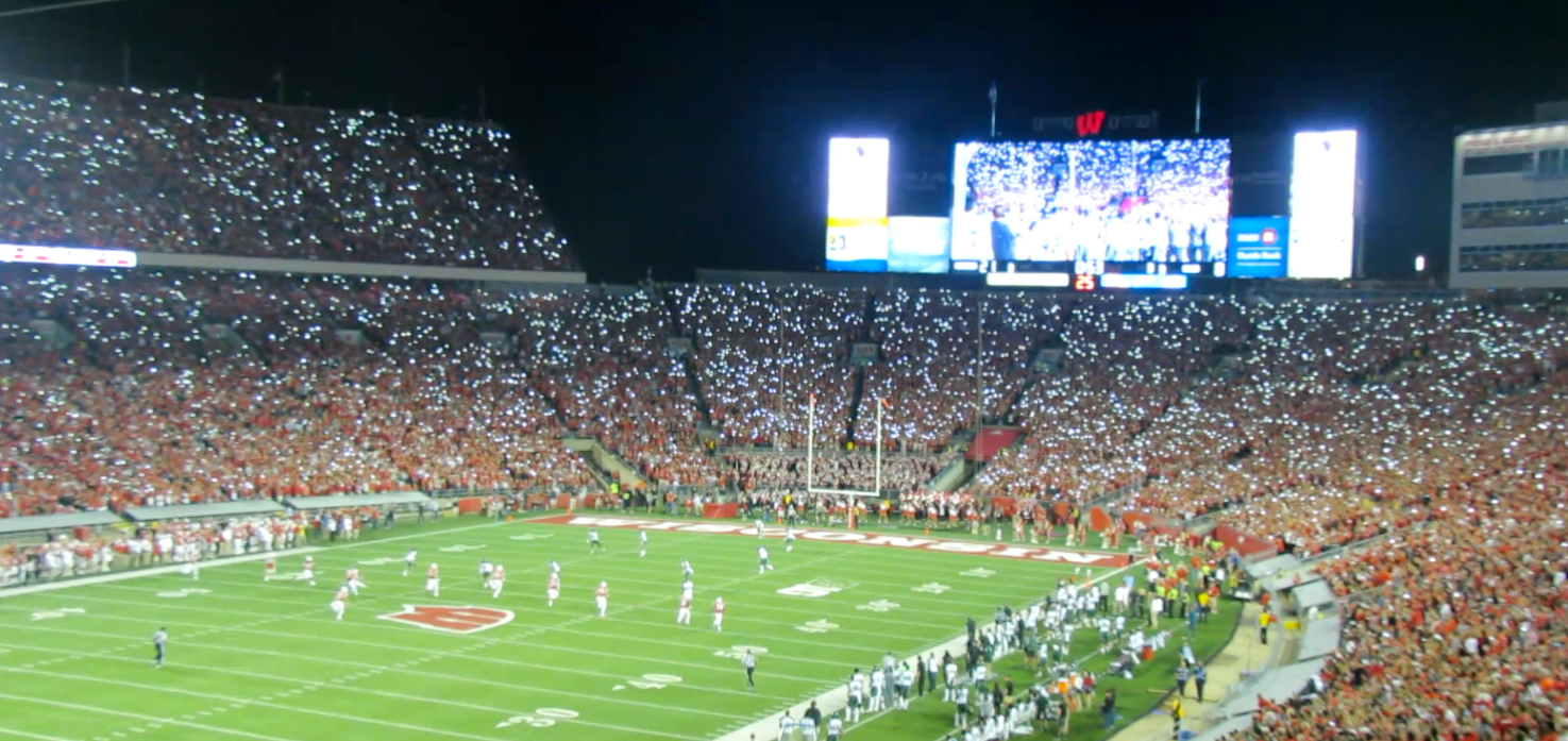 The war dance certainly felt appropriate with the setting being Camp Randall at night – a bonafide battleground. With all day to “prepare,” these Badger fans were loud and boisterous. During the traditional third quarter “jump around,” fans used the flashlight function on their smartphones to sparkle up the stadium – thousands of tiny lights bouncing up and down.