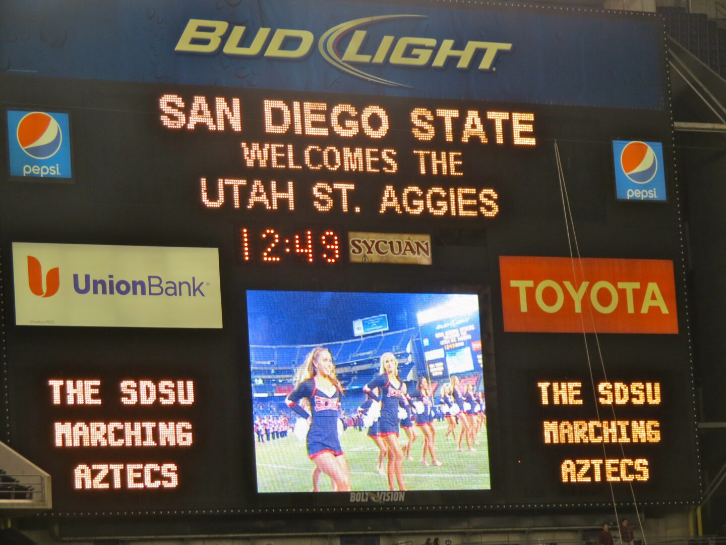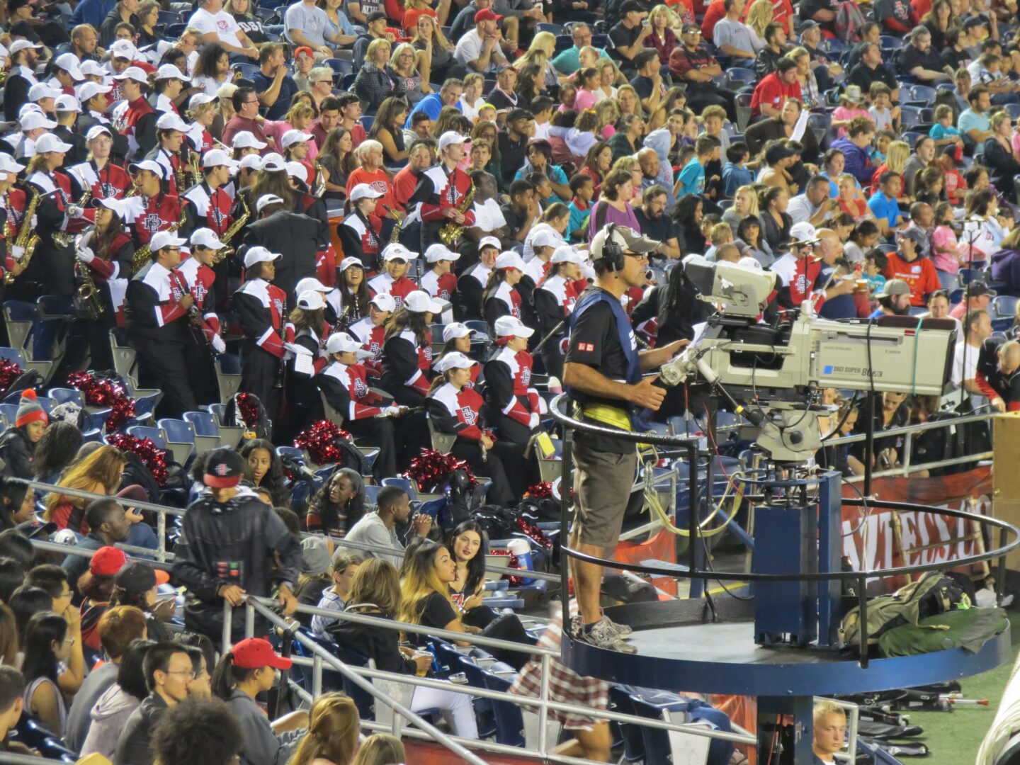 It’s evident that fans are beginning to feel the excitement coming together to create a lively atmosphere at Qualcomm Stadium. Friday night games can be a bit tricky, but throngs of red and black crowded the lots outside this concrete bohemoth to see their team make their arrival to the stadium. Near to Qualcomm Stadium, the Aztec Village was the hoppin’ spot. An almost carnival-like setting gave patrons food, drink, music, and even rides for the kiddos. The Aztec band made their appearance and rocked out the fight song, while the Aztec Warrior energized the crowd with a simple raise of his arms. Passion runs high for Aztec athletics and Friday night was no exception. At this point, San Diego State is the team to beat and excitement for a fantastic finish is palpable.
