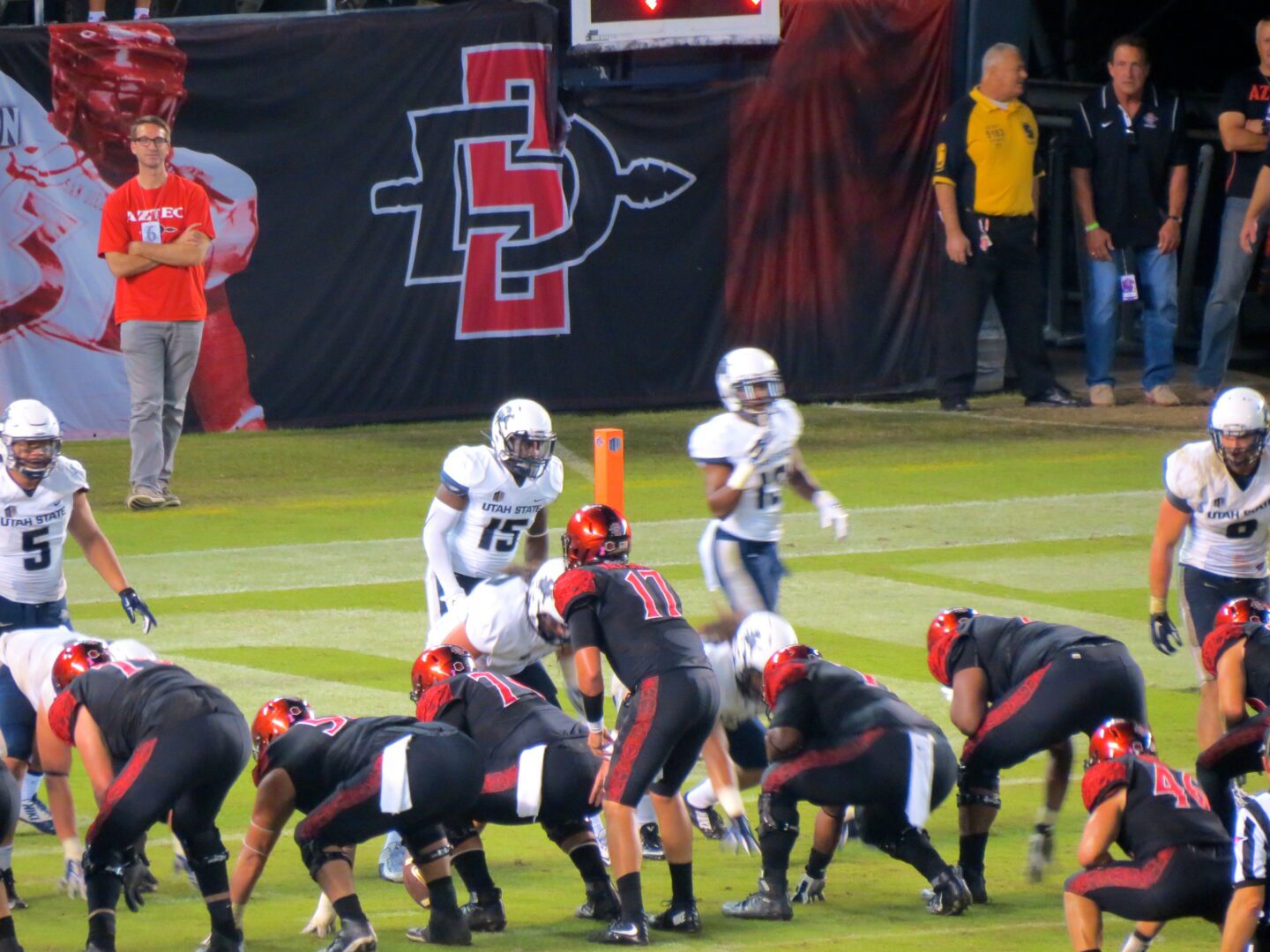 All eyes in Qualcomm Stadium watched SDSU running back, Donnell Pumphrey, as he stole the offensive spotlight with 181 yards. Really, though, the entire offense steamrolled Utah State with six scores on their first six drives. The Aggies just couldn’t recover and the Aztecs finished with a 48-14 victory. After a slow start to the season, San Diego State is now waking up and in the driver’s seat to win the Mountain West.