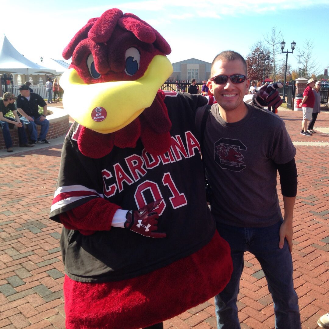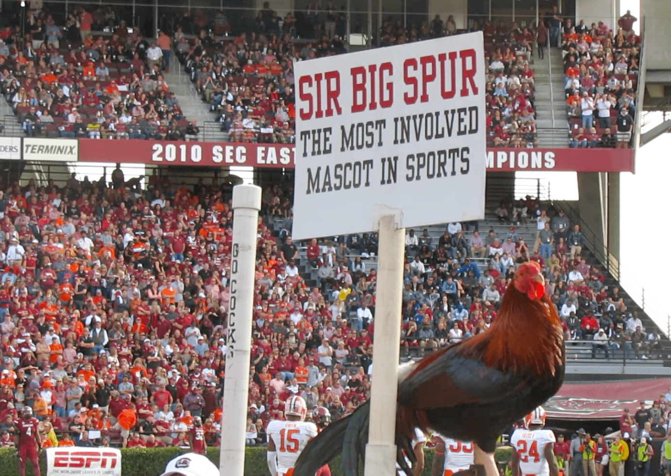 The gamecock mascot is one of the most iconic in college football. Cocky is the costumed mascot that throws his weight around and entertains the masses.