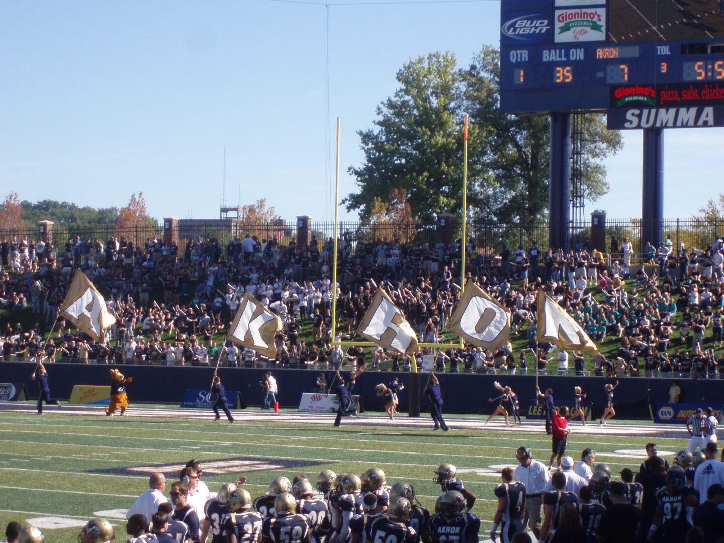 Overall, Akron football does not always generate national excitement, but this sparkling new stadium with its double decker sides, pyrotechnics, and an entertaining Kangaroo mascot have much of what it takes to set a winning atmosphere in place.