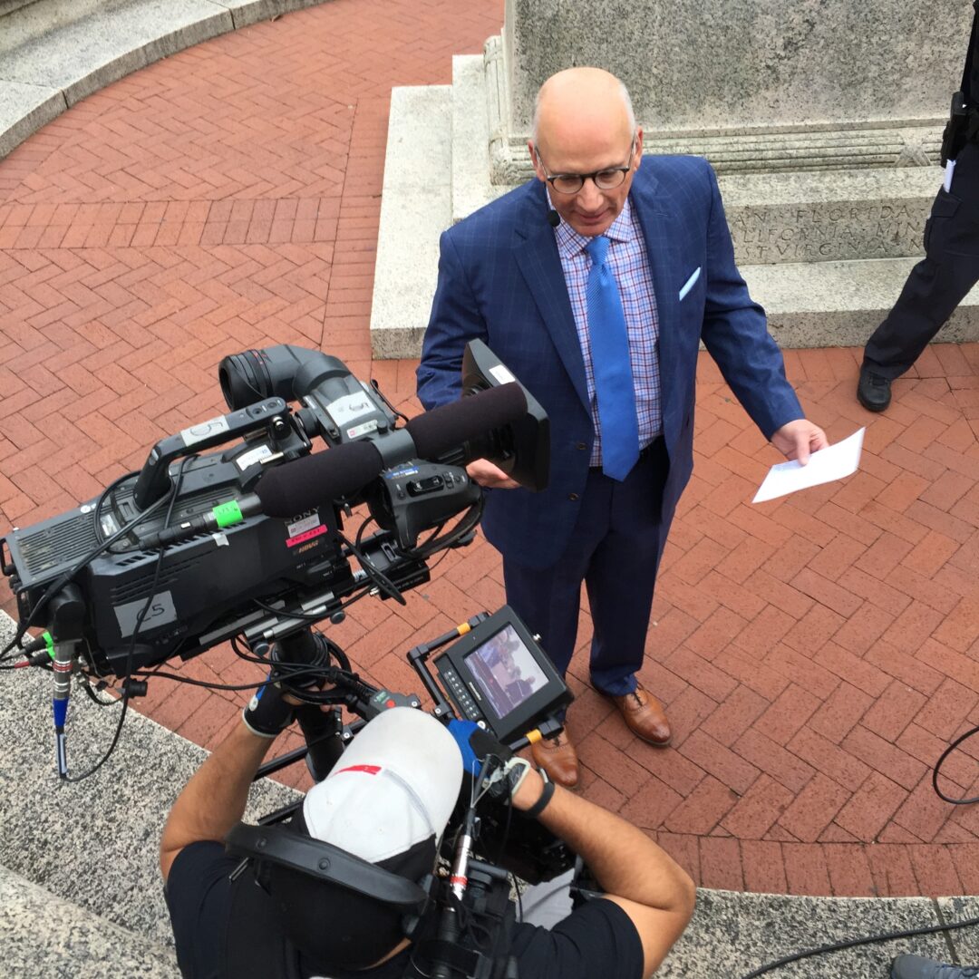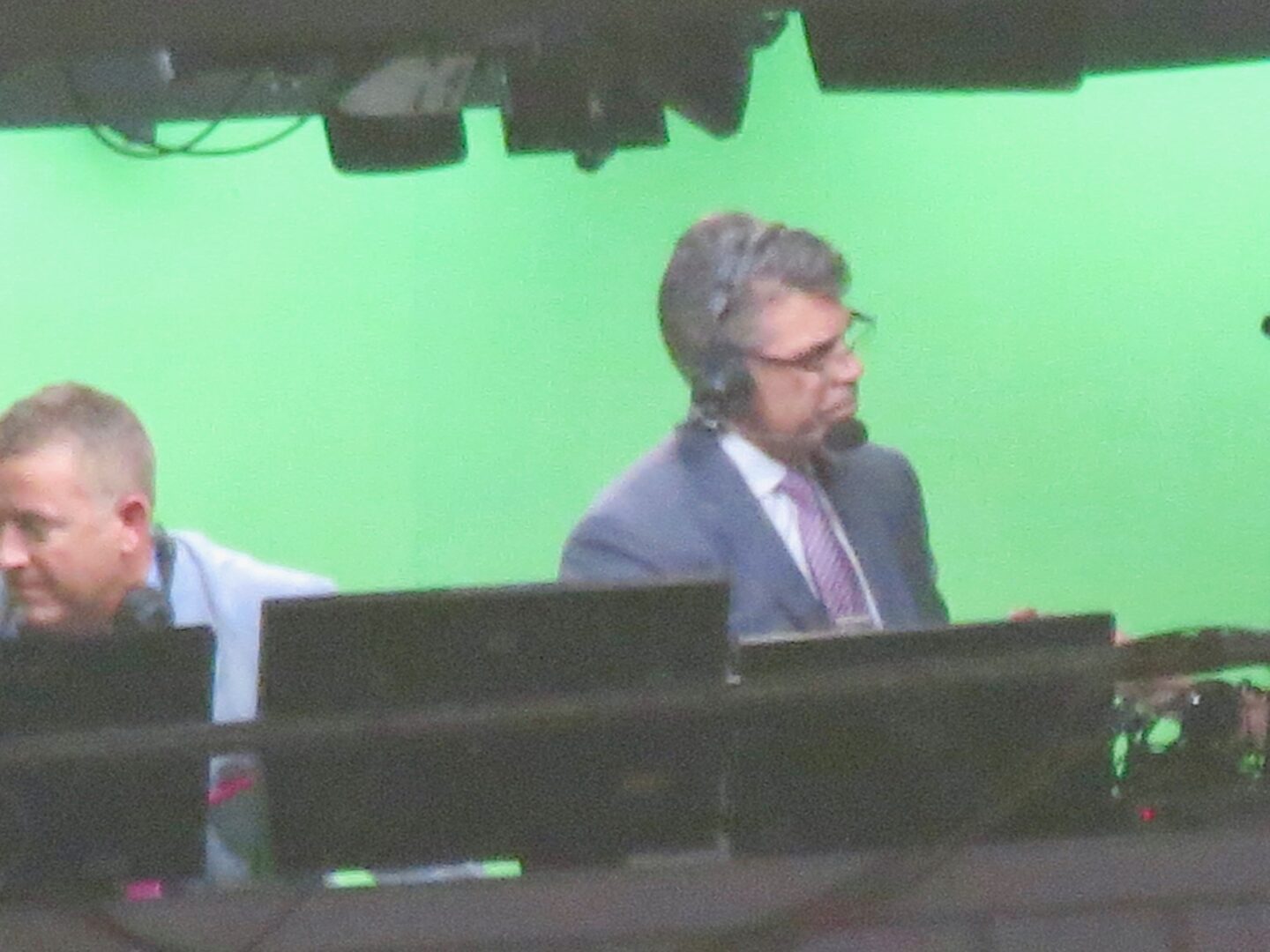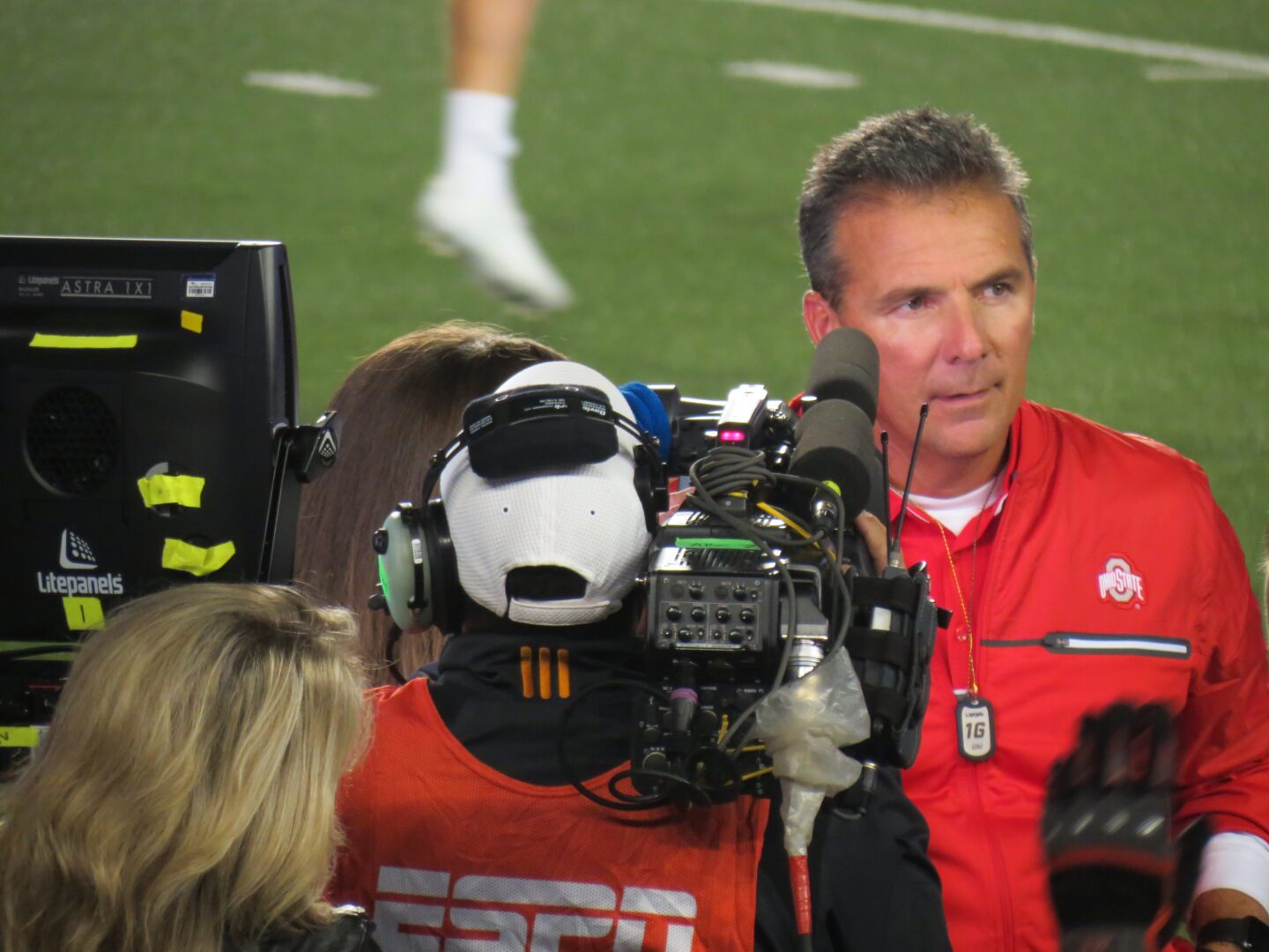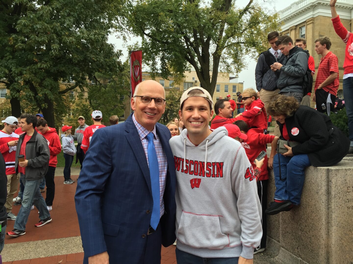 Rece Davis, Lee Corso, Kirk Herbstreit, and Desmond Howard had an audience of thousands packing this historic spot on campus – a bevy of boisterous Bucky and Brutus backers anxious to see another tight battle.We were fortunate to get on camera during one of the features during the show by ESPN contributor, Gene Wojciechowski. We enjoyed a small chat and conversation after the segment.