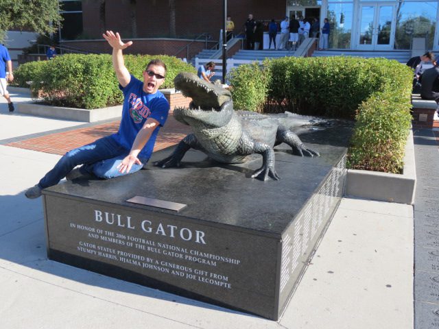 Once inside The Swamp, it’s impossible to ignore the gator chomp. Recognizable nationwide, the gator chomp is Florida’s battle cry and chief intimidator. Fans extend their arms toward the competition and clap them down together to the Jaws theme. No music is needed really. The gator chomp is a quick way for fans to respond to opposing battle cries without uttering a word.