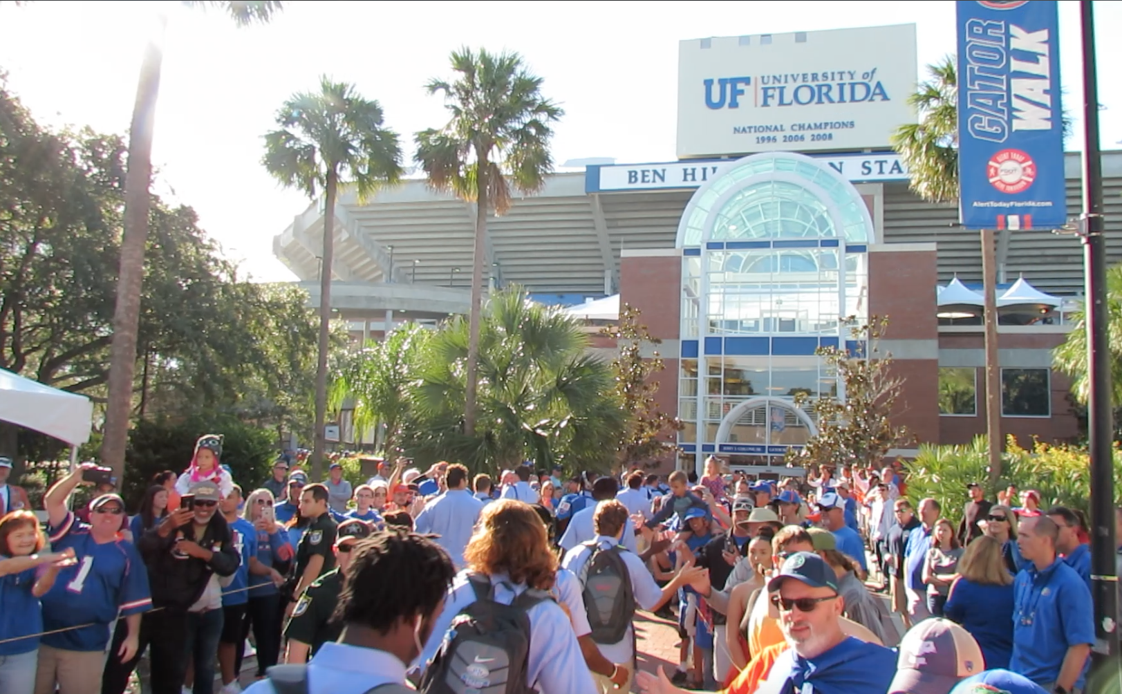 The day starts with tailgating that pops up all around the stadium, and fans gather outside the stadium’s entrance to greet the team during the Gator Walk. Surrounded by cheerleaders, the band, and Albert and Alberta Gator, the Gator Walk adds an exciting flair to gameday.