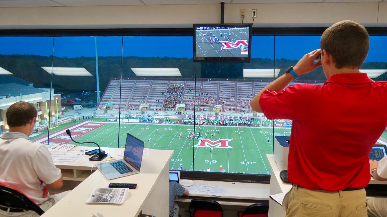 Inside the stadium’s main entrance, statues stand tall to honor each of the legendary coaches who launched their career in Oxford. Fans take pictures of and with these statues – there is a lot of pride for the Cradle of Coaches.  Fans file into Yager to watch their beloved Miami team.  The band and fans celebrate the fight song and alma mater before kickoff and Swoop, the team mascot, leads the Redhawks out onto the field.