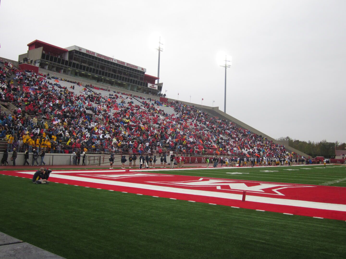 Miami has its devoted fans and treasured traditions.  The Hawk Walk gets gameday rolling as buses arrive that release the team into a bevy of fans, cheerleaders, and band members. It is clear that this place holds a passion for its RedHawks. Many fans still chant “Let’s Go Redskins” to honor the previous team name – ya, there is some tradition here. Despite changing the name at the request of the Miami tribe, the university has added a new heritage logo that honors the culture of the tribe for which the university is named.