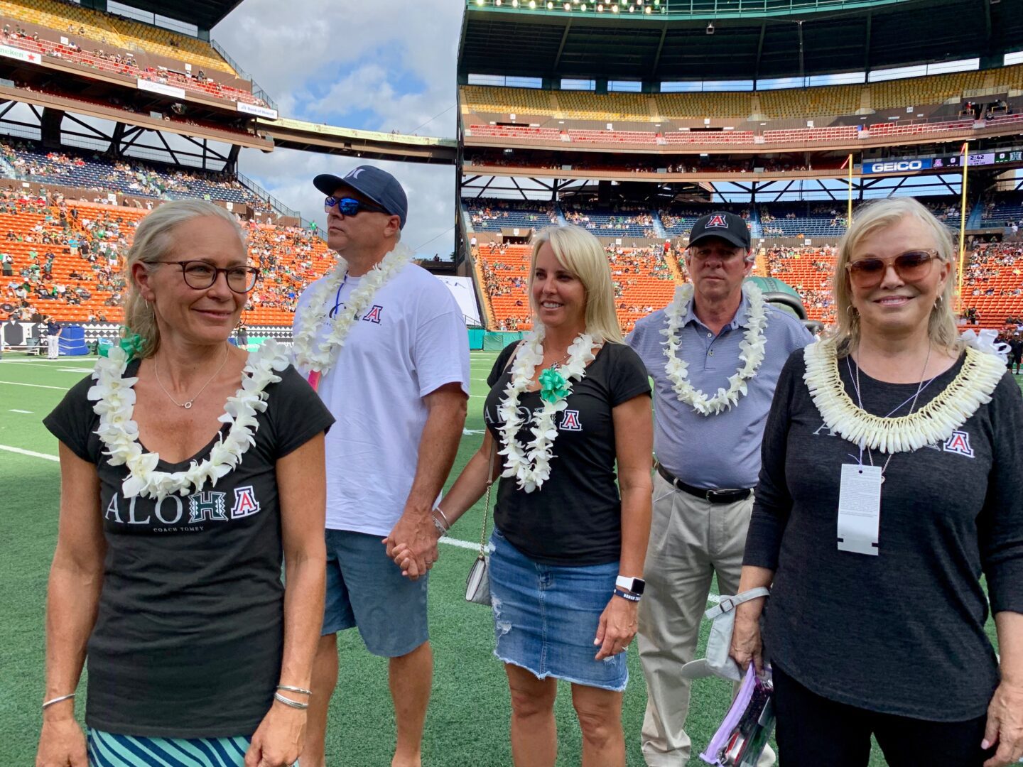 Dick Tomey’s family takes part in the coin toss prior to the game.