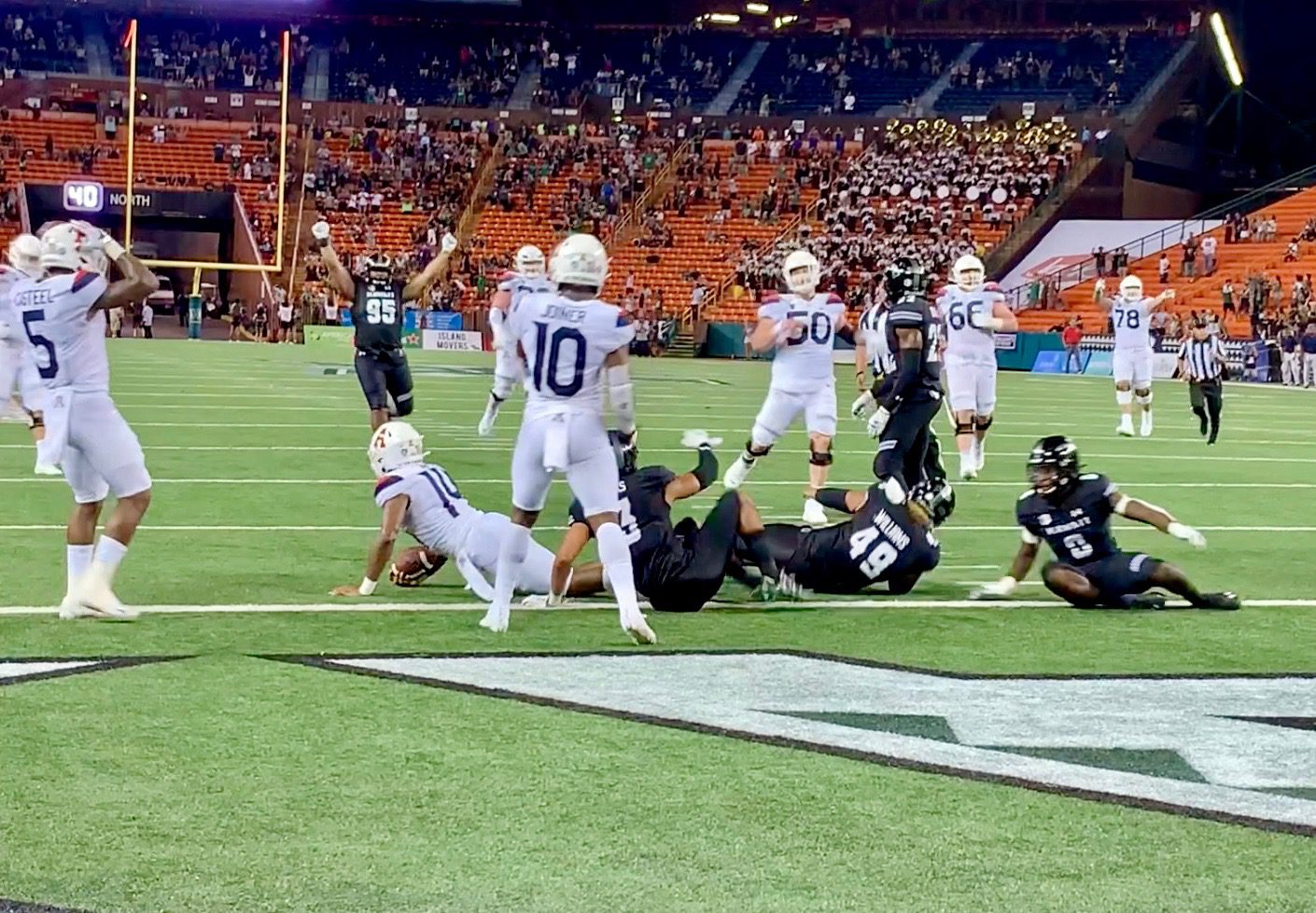 On the field for pregame, both teams looked poised with certain jitters fluttering beneath the surface. This was a big moment for the Rainbow Warriors. Coming off their first winning season in a while, they had a lot to prove. But, so did the Wildcats. Being the Pac-12 representative on this day, they had more to lose. That couldn’t have been illustrated better than by an Arizona assistant coach that I overheard inspiring his team with the following: “We didn’t come way out here for nothin’. That’s gonna be a long ass fu*&in’ ride back home, you understand me? I wanna fu#@in’ feel good.”