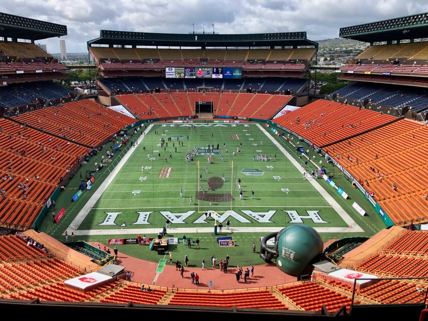 During pregame outside Aloha Stadium, fans fill the parking lot with a level of tailgating, pomp, and pageantry that could rival many locations on the mainland. Geographical remoteness does not equate to a cultural setback when it comes to college football. Yes, many potential fans that could fill the empty parking spaces may choose Waikiki Beach or Diamond Head for their Saturday afternoon entertainment. That’s the cost when your team is situated on one of the most gorgeous islands on the planet. But, the thousands of fans that gather inside Aloha Stadium make their passion count. It’s palpable.