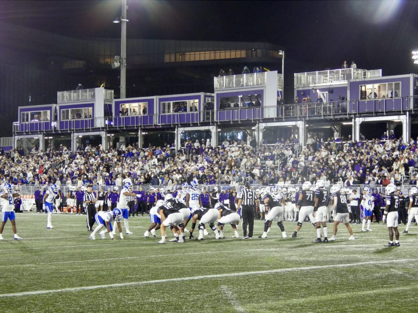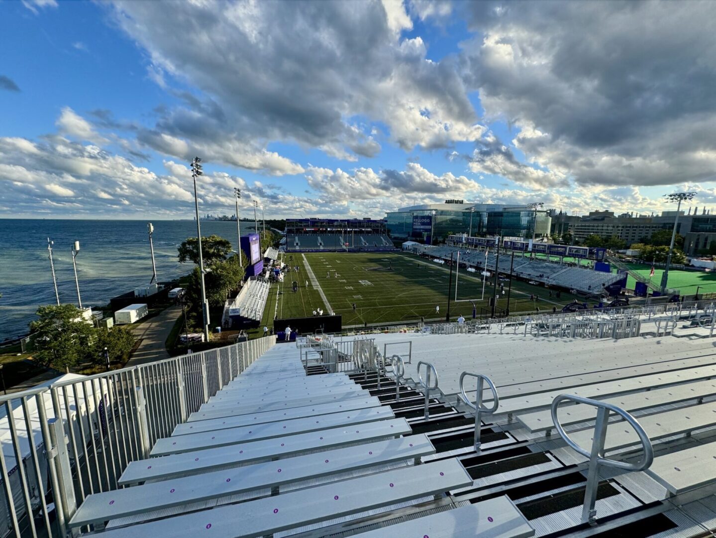 Ryan Field, the 98-year old home of the Wildcats, has been demolished. While Northwestern fans wait for the new version of Ryan Field to be completed in 2026, a unique temporary home has been constructed along the shoreline of Lake Michigan. The intimate 12,000 seat Martin Stadium offers picturesque views of Chicago’s skyline against the waters of this famous Great Lake. Tonight’s battle against Duke is the venue’s first prime time event.