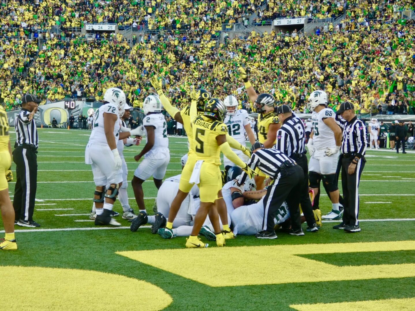 A sloppy start to the game gave way to QB Dillon Gabriel tossing a pair of touchdowns and the defense clamping down on the visitors from East Lansing. As the fans began to collectively sing “Shout” after the third quarter, it became evident that Autzen’s energy had claimed another victim. Four visits to Oregon, and Michigan State never experienced triumph. The Ducks have taken flight in their first season as a Big Ten member with conference and national titles within reach.
