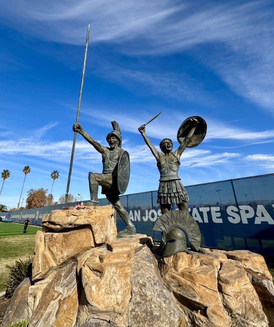 Like many universities in their early years, San José State experienced periods of mascot identity shifts. After identifying as the Daniels, the Teachers, the Pedagogues, the Normals, and the Normalities, they eventually settled on Spartans in 1922. Today, Sammy the Spartan represents SJSU. He is the wide-grinned spirit force on the sidelines that infuses pride in the Santa Clara Valley. His playful presence at sporting events is a highly anticipated component of gameday.