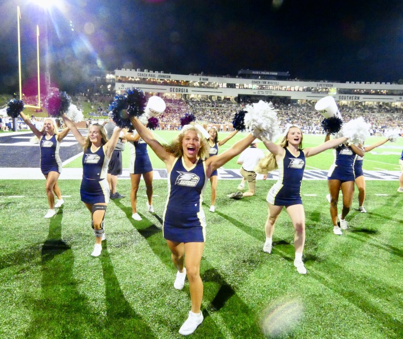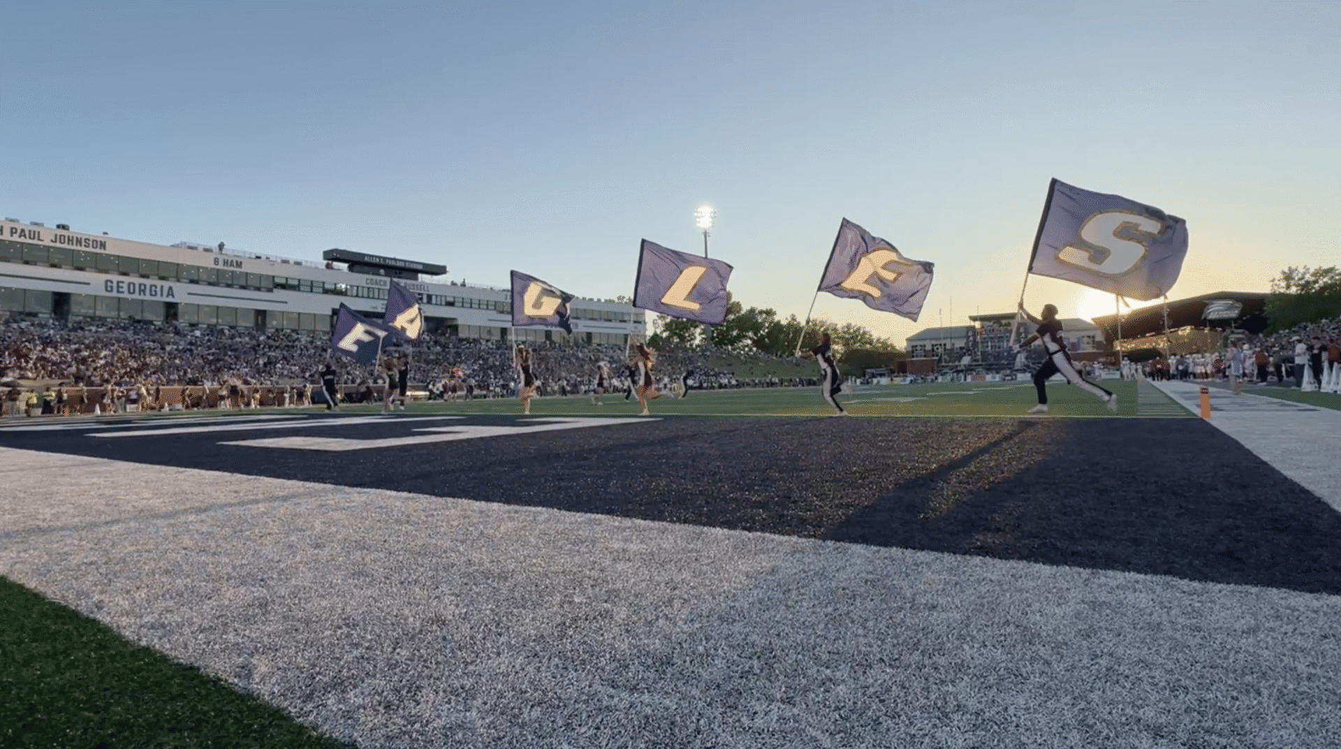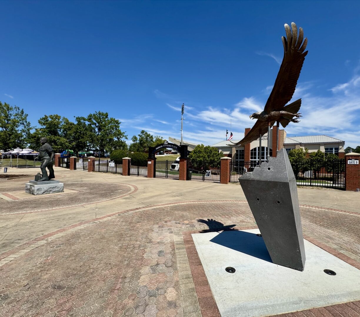 Mascots are emblematic of the spirit of a school, but few mean more than the live eagle that takes flight before kickoff on Georgia Southern gamedays. In 2007, Freedom was introduced and became an instant legend. Flying over the stands, this majestic eagle defined the soul of Georgia Southern. Thousands of proud eyes lifted their gaze toward the soaring strength of Freedom – a single creature above that unified the masses below. In the spring of 2025, Freedom passed away triggering shock and sorrow across the Peach State. Tributes and tears graced the home opener as fans embraced the memory and legacy of Freedom. A bronze statue now rests outside the stadium immortalizing his dynamism and grandeur. As healing runs its course under quiet skies, the future above Paulson holds winged legends that will carry on this treasured tradition.