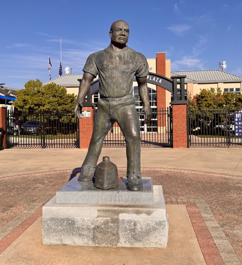 Erk Russell’s influence extends far beyond GATA. The statues both inside and outside of Paulson emit the “One More Time” rallying cry that he coined to inspire a widespread community of players and fans. He had a knack for converting that which was lackluster into something inspiring. At his suggestion, the uninviting gnat-populated drainage ditch near the practice fields became known as “Beautiful Eagle Creek” through which magical waters flowed. As a result, this creek now symbolizes the immense power in something unassuming – an ideal metaphor for Georgia Southern.